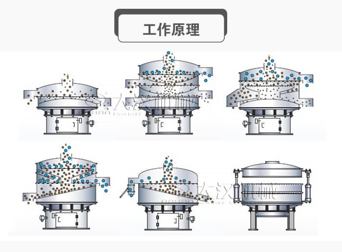 它是以直立式電機作激振源,通過調節電機上、下兩端安裝有偏心重錘,可將電機的旋轉運動轉變為水平、垂直、傾斜的三次元運動,然后再把這個運動傳遞給篩面,使篩面上的物料做外擴漸開線運動,從而實現對粉狀物料進行精篩分、概率篩分等。
