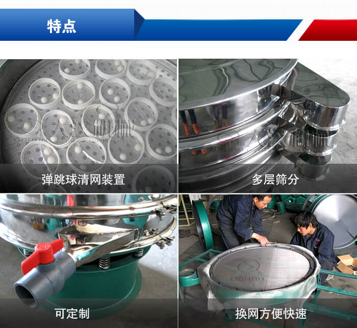 【優(yōu)勢】:①1-5層篩網(wǎng),可以同時進(jìn)行2-6個粒度規(guī)格的篩分和過濾;②篩分精度可達(dá)到500目,加裝彈跳球清網(wǎng)裝置,篩孔不堵塞,篩分精度高;③可以按照用戶要求免費(fèi)設(shè)計。