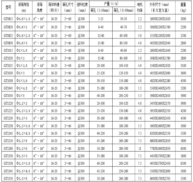 GTS系列 滾筒篩 產品概述: GTS系列滾筒篩是一種為電廠、焦化廠、建材、冶金、化工、礦山等行業而研制的專用篩分設備,它克服了圓振動篩和直線篩在篩分較濕物料時出現的篩網堵塞問題,提高了篩分系統的產量和可靠性。 GTS系列滾筒篩是由六角形滾筒、機架、漏斗、減速器、電動機五個部分成,根據實際生產需要可以進行各種安置方案設計。破碎的石料進入滾筒后,靠滾筒