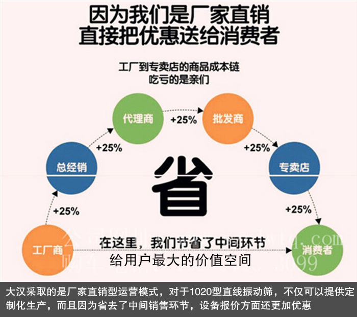 大漢振動(dòng)機(jī)械采取的是廠家直銷型運(yùn)營(yíng)模式,對(duì)于1200型旋振篩,不僅可以提供特殊訂制生產(chǎn),而且因?yàn)槭∪チ酥虚g銷售環(huán)節(jié),設(shè)備報(bào)價(jià)方面還更加優(yōu)惠,保證讓您以較低的價(jià)格購(gòu)得滿意的旋振篩設(shè)備。